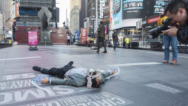 在新冠肺炎疫情席卷全美,纽约发布居家避疫令前,杨金池走上曼哈顿街头,以回收细木、防水桌布等材料架构一座“移动隔离所”,旨在提醒世人遵循规则,身体不舒服应确实在家隔离,确保自己不受病毒感染外,也不会把病毒传播给他人。
