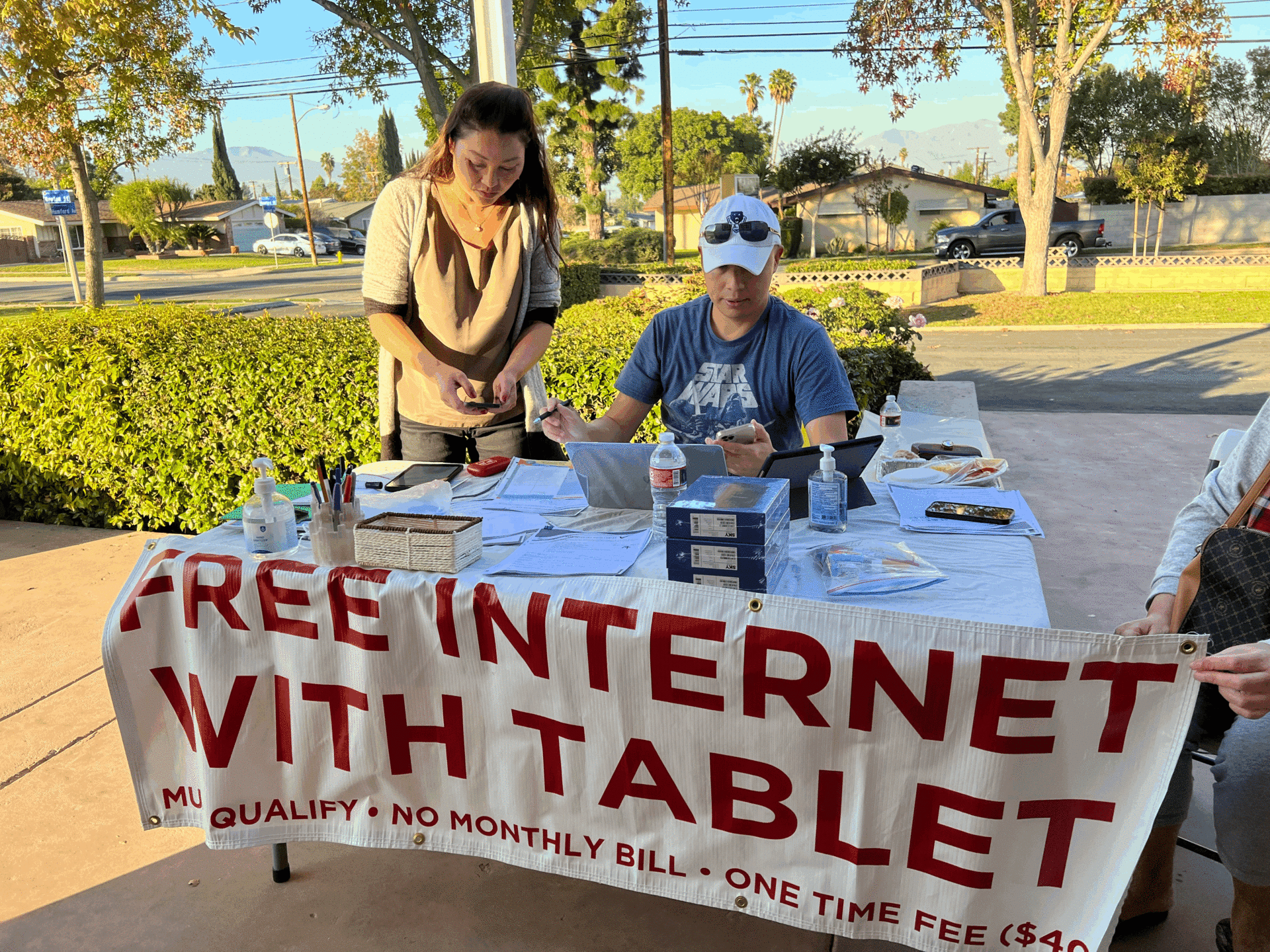 洛杉矶华人资讯网11月30日报道(记者周慕云)11月30日,紧急宽带福利计划(the Emergency Broadband Benefit Program,简称EBB)的申请代理人,在华人密集的哈仙达岗设立代理申请服务站点,以帮助更多有需要的华人民众快速申请网络福利。服务开展的当天,站点前排起了长龙,对于英文不好的华人新移民和华人长者来说,这样的代理申请服务可谓是应急之举。