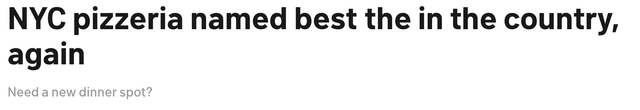 据NBC新闻报道 下东区的一家披萨店刚刚连续第二年被评为美国最佳披萨店。