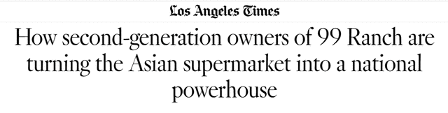 据洛杉矶时报7月7日报道 对于许多加州的亚裔来说,大华超级市场(99 Ranch,常称99大华)不仅仅是一家超市,在此购物对他们来说就像是一场"朝圣之旅"。