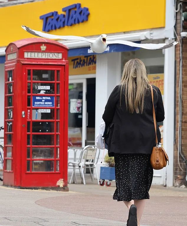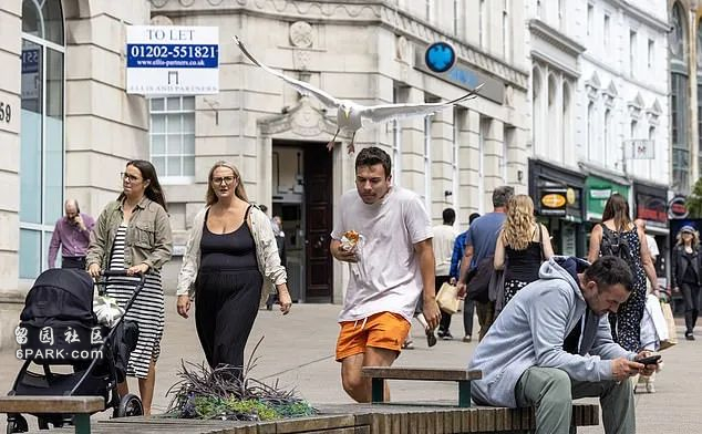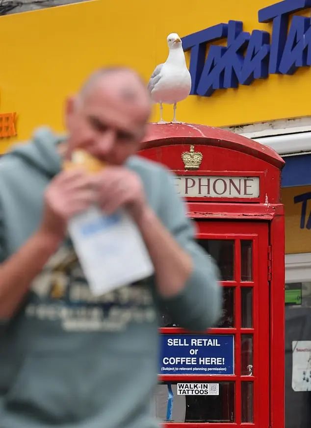 在伯恩茅斯,一只被昵称为"格雷格"的海鸥更是成了当地的"网红"。它精明狡猾,常常利用面包店附近的红色电话亭作为观察台,伺机而动。当顾客拿着刚买的香肠卷或牛排面包走出店门时,它就会突然俯冲而下,一击即中。