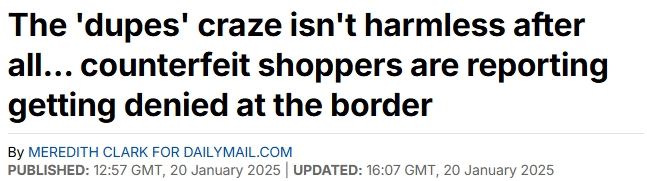 据dailymail 1月20日报道 目前越来越多的消费者开始转向价格仅为正品一半甚至更低的“山寨”产品。然而,这种选择可能隐藏着意想不到的风险,甚至可能被拒绝入境美国。