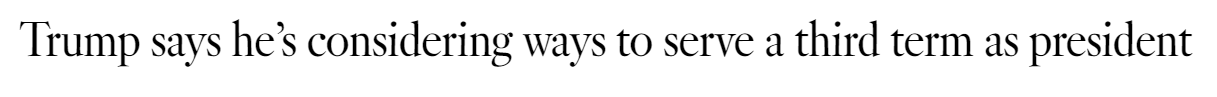 据LA Times 3月30日报道 周日,川普总统在海湖庄园接受NBC采访时明确表示,他正在考虑如何突破宪法对连任的限制,在2029年初第二任期结束后继续领导国家。